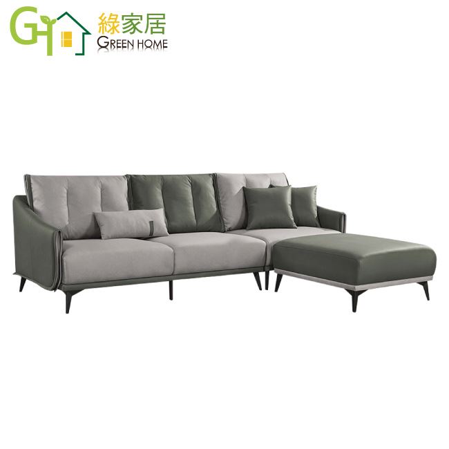 【綠家居】奧克蘭 時尚雙色柔韌科技布L型沙發椅(三人座+椅凳)