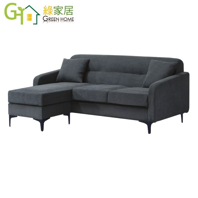 【綠家居】羅巴倫 時尚灰絲絨布小L型沙發組合(三人座+椅凳)