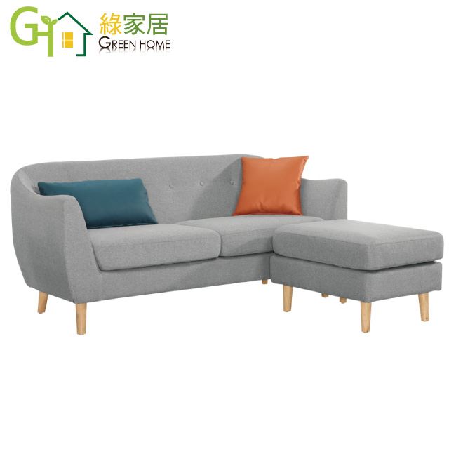 【綠家居】安格利淺灰可拆洗棉麻布小L型沙發椅組合(雙人座+椅凳)