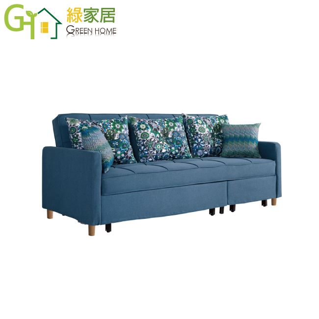 【綠家居】格利略時尚藍棉麻布拉合式L型沙發/沙發床