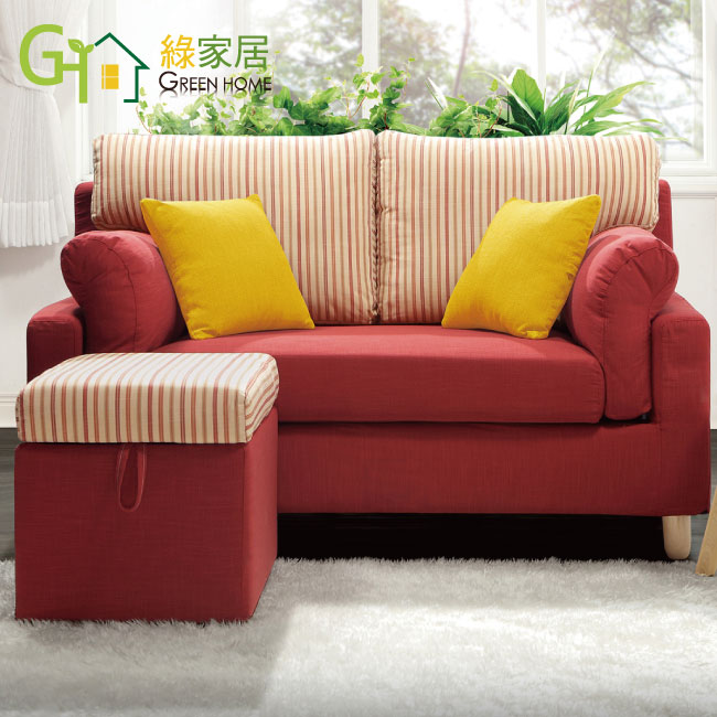 【綠家居】亞力 時尚紅亞麻布獨立筒L型沙發組合(雙人座+收納腳椅)