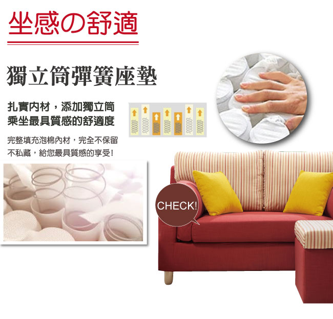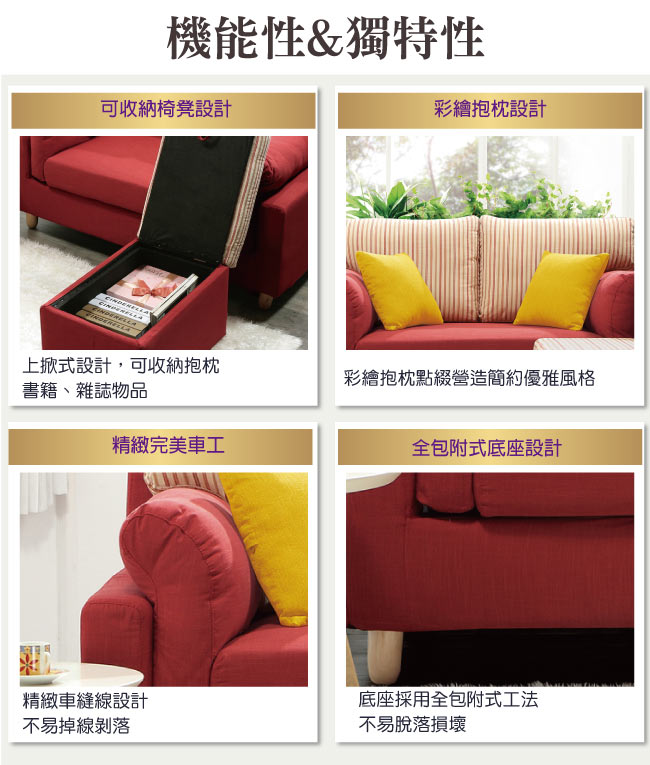 【綠家居】亞力 時尚紅亞麻布獨立筒L型沙發組合(雙人座+收納腳椅) 充滿現代風格的紅色系設計+簡約曲線造型+精緻車縫線+曲線扶手+寬厚椅背+收納式腳椅等設計,雙人座+腳椅的二向任意選搭的設計,就是這種頂級質感的設計,能輕鬆地融入各種空間風格,沙發採用桐木實木椅身材質耐用堅固,腳座為實木材質結構搭配高密度泡棉+絲棉+獨立筒彈簧材質製作椅墊,座感舒適,椅套採用高透氣亞麻布材質搭配精緻抱枕及現代曲線整體設計,即使您身在都市的喧囂鬧區,只要回到了家,輕鬆打造溫暖舒適的居家生活,可千萬別錯過 【綠家居】亞力 時尚紅亞麻布獨立筒L型沙發組合(雙人座+收納腳椅) 了喔!現在購買專人送到府服務,免組裝+免運費,讓你省時省力省運費!