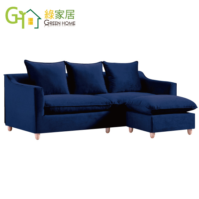 【綠家居】黛娜 時尚藍絲絨布獨立筒L型沙發組合(三人座+腳椅)