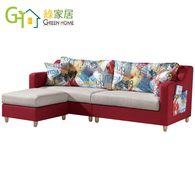 【綠家居】唐娜 時尚紅亞麻布獨立筒L型沙發組合(四人座+腳椅)