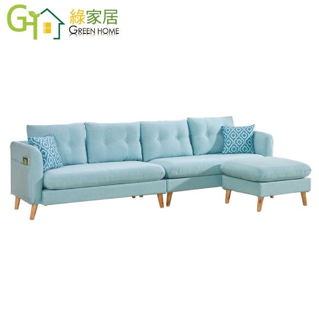 【綠家居】敦斯登 時尚藍可拆洗亞麻布獨立筒L型沙發組合(四人座+椅凳)