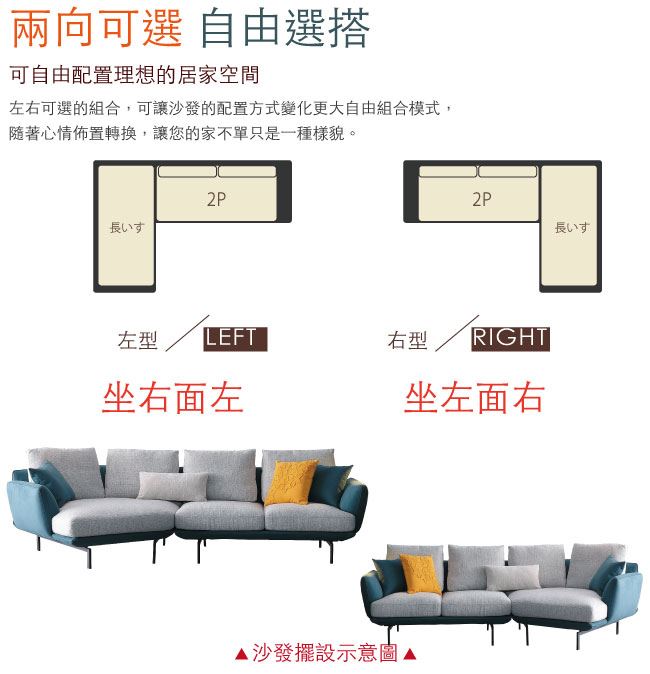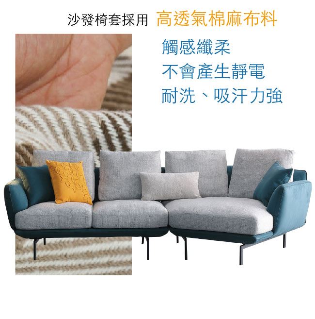 商品介紹 | 【綠家居】路佐斯 現代雙色棉麻布L型沙發椅組合(左&右二向可選) 現代雙色系+左&右二向可選+現代美型外觀+安心材質設計,就是這種頂級質感的設計,能輕鬆地融入各種空間風格,採用松木實木骨架&椅身+透氣棉麻布+防鏽黑漆腳座+高密度三層式泡棉等安心材質,品質安心有保障,現在購買專人送到府服務,免組裝+免運費,讓你省時省力省運費! 【商品特色】 現代雙色系+左&右二向可選+現代美型外觀+安心材質設計 松木實木骨架&椅身+透氣棉麻布+防鏽黑漆腳座+高密度三層式泡棉等安心材質 專人送貨到府免組裝免運費服務,讓您省時又便利 |