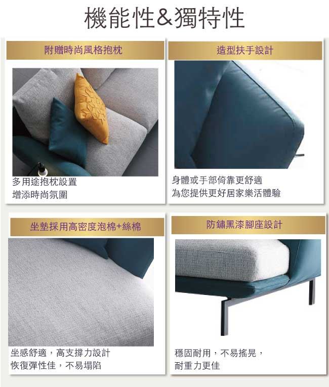 材質 | ◆產品名稱:【綠家居】路佐斯 現代雙色棉麻布L型沙發椅組合(左&右二向可選) 產品尺寸: 尺寸:(寬)310x(深)120x(高)90/ 公分 材質:桐木實木骨架椅身+防鏽黑漆腳座 布料:透氣棉麻布 坐墊:三層式高密度泡棉+絲棉 |