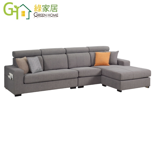 【綠家居】德蕾特灰色耐刮輕絨貓抓布L型沙發組合(四人座+椅凳)