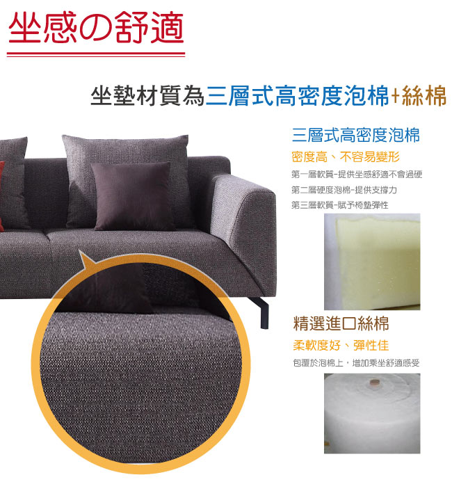 高密度泡棉+絲棉材質椅墊,提升坐感舒適度