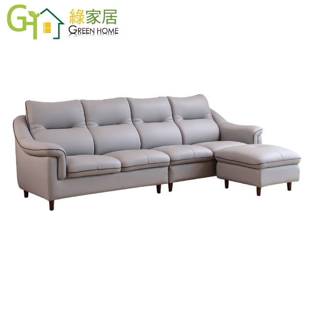 【綠家居】布卡斯仿真透氣牛皮革L型沙發組合(二色可選+四人座+椅凳組合)