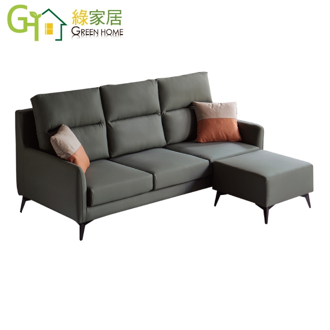 【綠家居】星亞灰色透氣皮革L型沙發組合(三人座+椅凳組合)