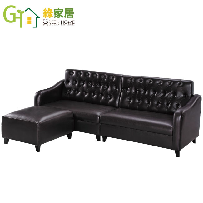 【綠家居】沙諾德 時尚黑皮革L型沙發組合(四人座+腳椅)