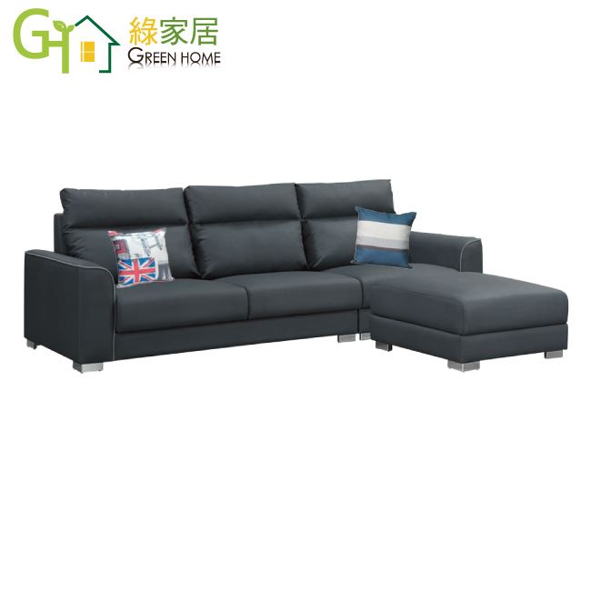 【綠家居】包爾深灰色透氣皮革L型沙發組合(三人座+椅凳組合)