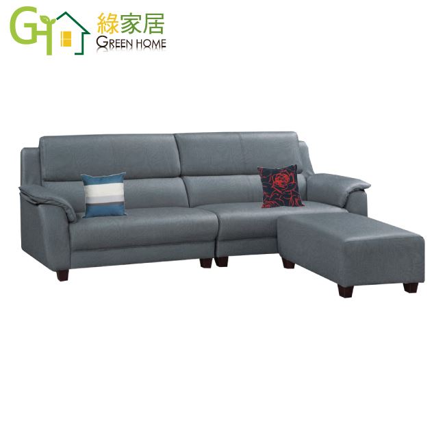 【綠家居】艾默灰色耐刮皮革L型獨立筒沙發組合(四人座+椅凳組合)