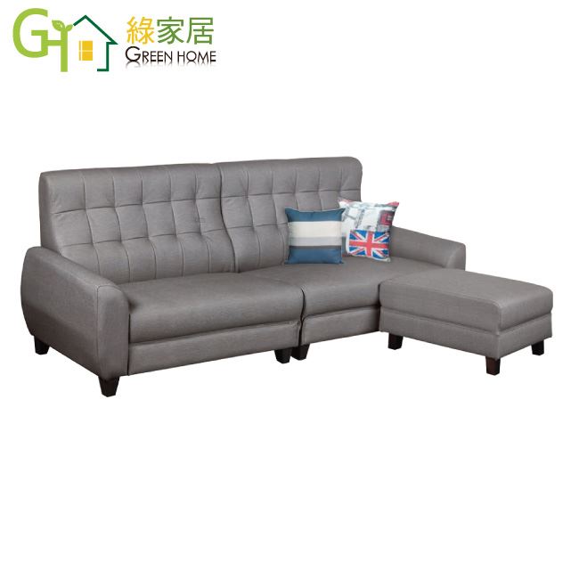 【綠家居】凱默灰色耐刮皮革L型沙發組合(四人座+椅凳組合)