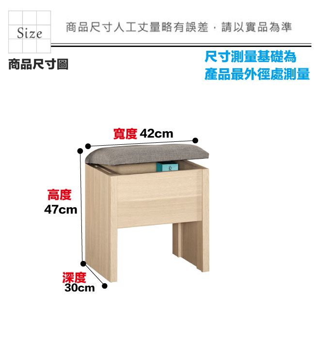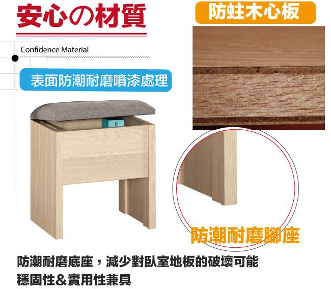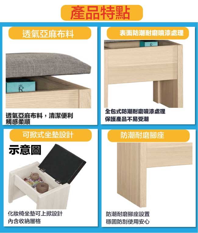 材質 | ◆產品名稱:【綠家居】波卡帝亞麻布可收納化妝椅 亞麻布料坐墊化妝椅尺寸:(寬)42x(深)30(高)47/公分 ◆材質: 材質:防蛀木心板+防潮耐磨腳座+透氣亞麻布料+高密度泡棉 噴漆:防潮耐磨噴漆處理