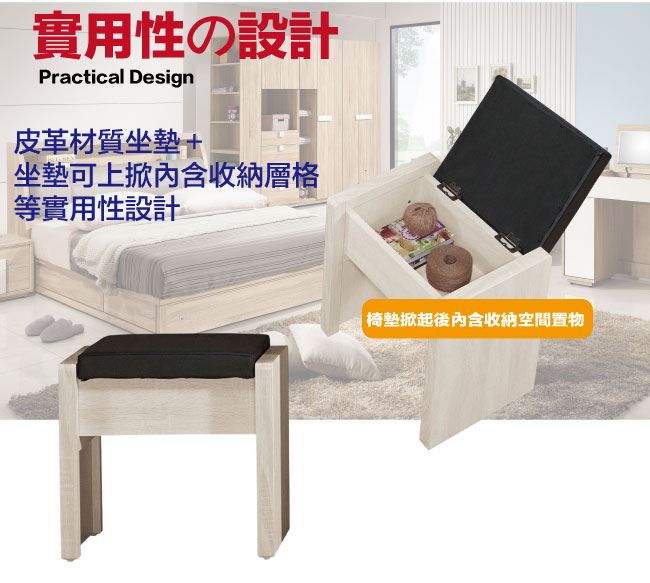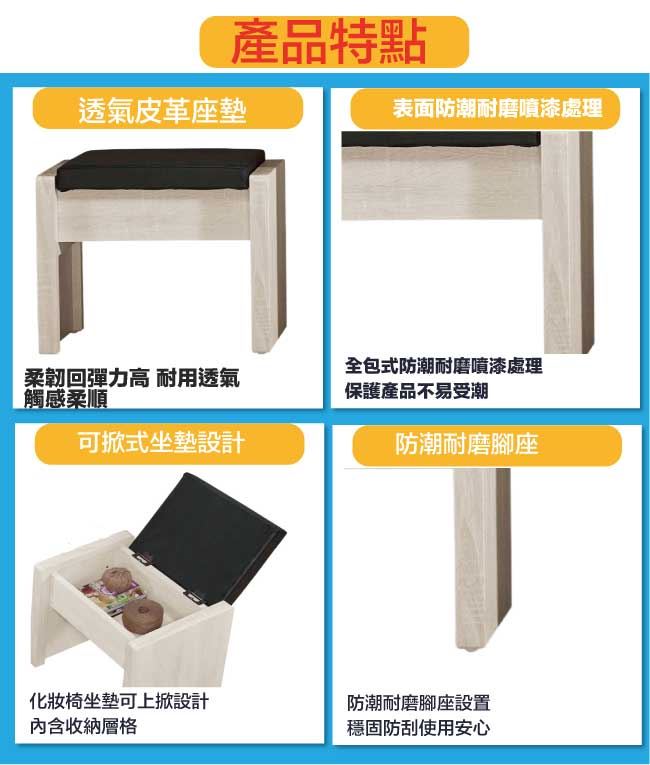 【綠家居】艾絲莉透氣皮革可收納化妝椅(二色可選)