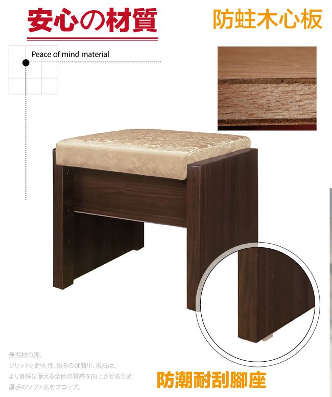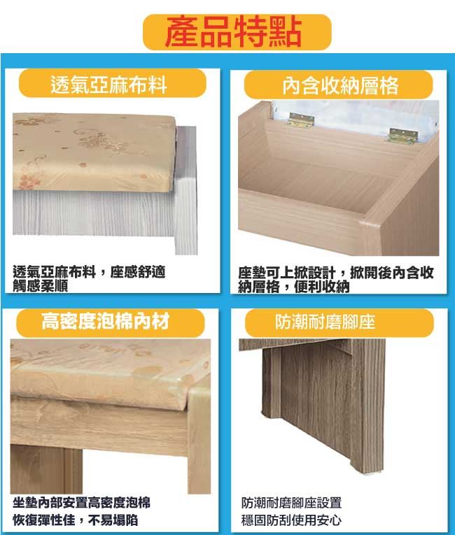材質 | ◆產品名稱:【綠家居】甜蜜亞麻布可收納化妝椅(五色可選) 尺寸:(寬)43.5x(深)30.5(高)38公分 ◆材質: 材質:防蛀木心板+防潮耐磨腳座+透氣亞麻布+高密度泡棉 噴漆:防潮耐磨噴漆處理