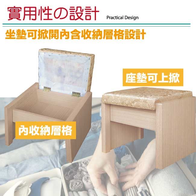 【綠家居】甜蜜亞麻布可收納化妝椅(五色可選)