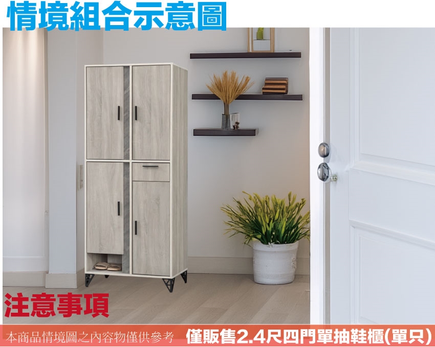 ◆產品名稱:【綠家居】曼科2.4尺雙色四門單抽高鞋櫃