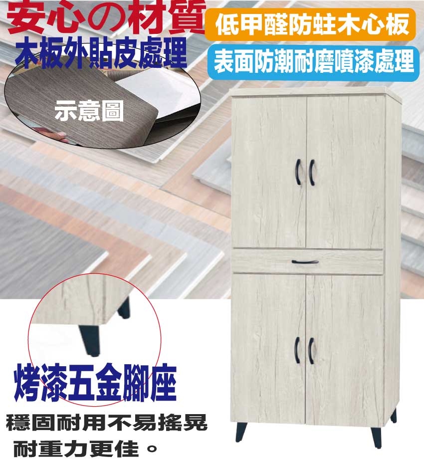 【綠家居】艾可曼2.6尺四門單抽高鞋櫃 白雪松木紋色系+現代簡約風格+安心材質製造,使用放心+搭配居家更便利,整體採用防蛀木心板+烤漆五金腳座+五金滑軌結構+防夾手緩衝五金等材質搭配外層採用優莉坦耐磨全包式噴漆處理 ,採用開門櫃+單抽屜+內開放層格等收納空間設計,全由專人配送到家,專業安心服務,替你省下更多時間!