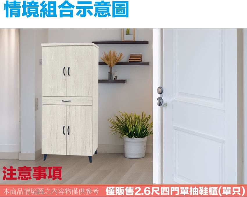 ◆產品名稱:【綠家居】艾可曼2.6尺四門單抽高鞋櫃