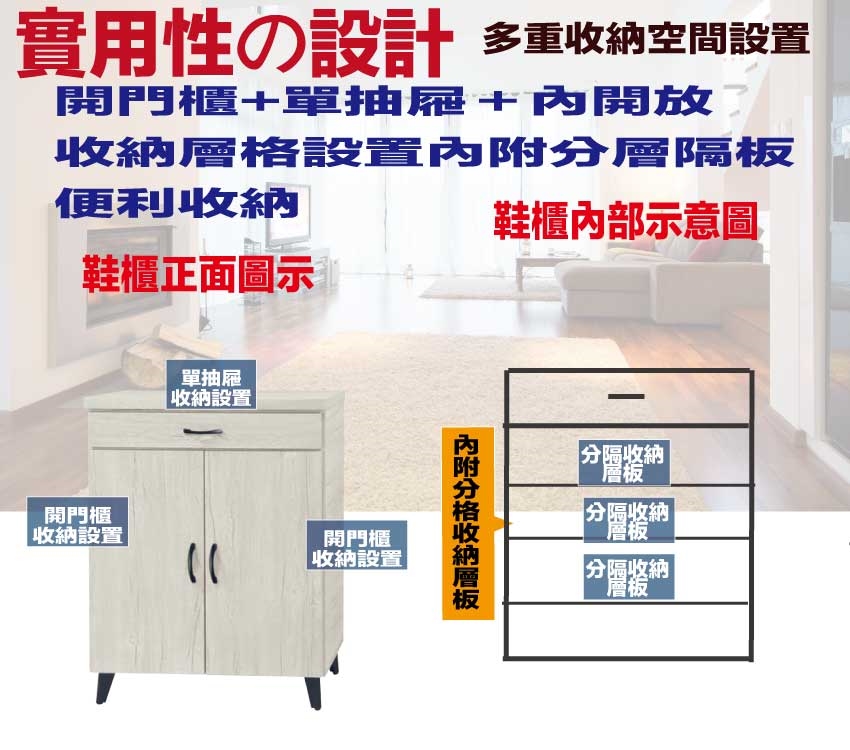 ◆產品名稱:【綠家居】艾可曼2.7尺二門單抽低鞋櫃