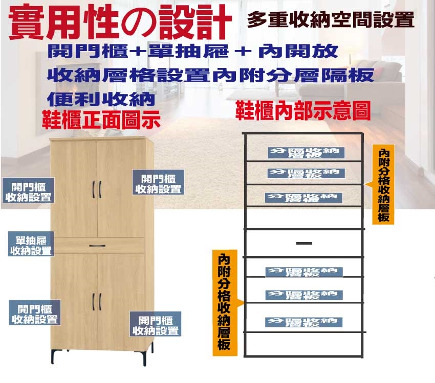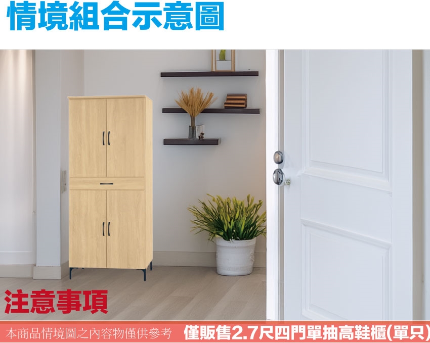 ◆產品名稱:【綠家居】薛蒂2.7尺四門單抽高鞋櫃(二色可選)