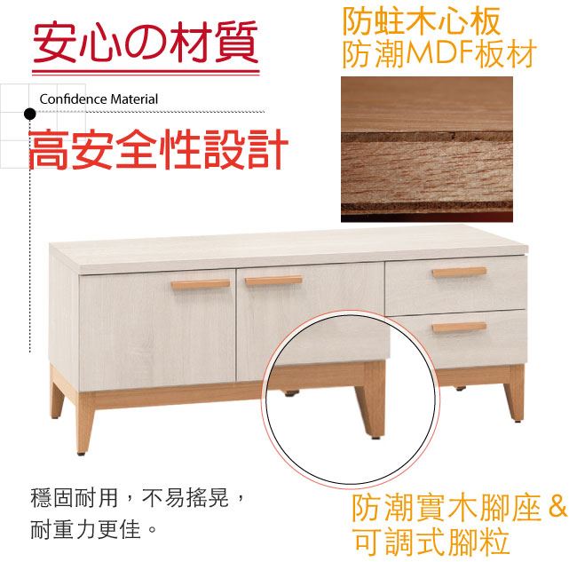 材質 | ◆產品名稱:【綠家居】 伊森瑪 雙色4尺二門二抽座鞋櫃/收納櫃 尺寸:(寬)120x(深)40x(高)48.3/公分 ◆材質: 材質:防蛀木心板+防潮耐磨腳座+防夾手緩衝門片五金+五金滑軌結構 |