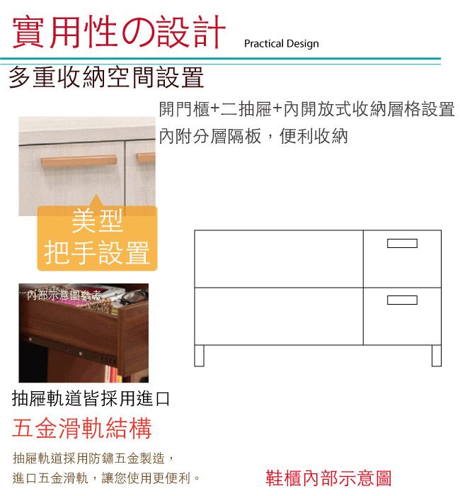 - 開門櫃+二抽屜+內開放式收納