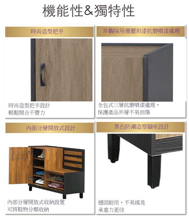 商品介紹 | 【綠家居】法加亞 雙色3尺單門座鞋櫃(三色可選) 三色可選+現代簡約風格+安心材質製造,整體採用防蛀木心板+防潮耐磨腳座+防夾手緩衝門片五金等安心材質製造,產品外層採用防潮耐磨噴漆處理搭配採用開門櫃+穿鞋坐板+內&外開放式收納等收納空間設計,全由專人配送到家,專業安心服務,替你省下更多時間! 【商品特色】 三色可選+現代簡約風格+安心材質製造,使用放心+搭配居家更便利 採用防蛀木心板+防潮耐磨腳座+防夾手緩衝門片五金等安心材質製造 產品外層採用防潮耐磨噴漆處理 搭配採用開門櫃+穿鞋坐板+內&外開放式收納等收納空間設計 此商品不需要DIY組立,此商品為組立後之成品 品質保證、專業設計、貼心服務 全由專人配送到家,專業安心服務,替您省下更多時間 |