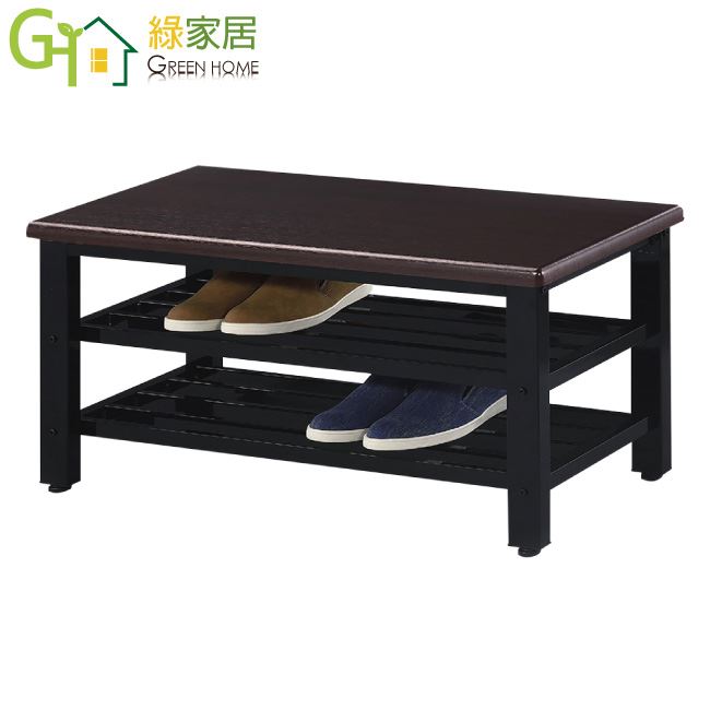 【綠家居】亞博斯 胡桃色2.8尺開放式座鞋架