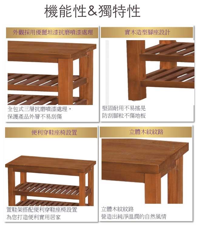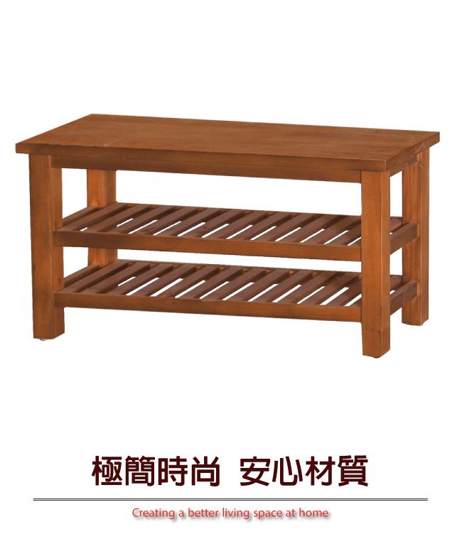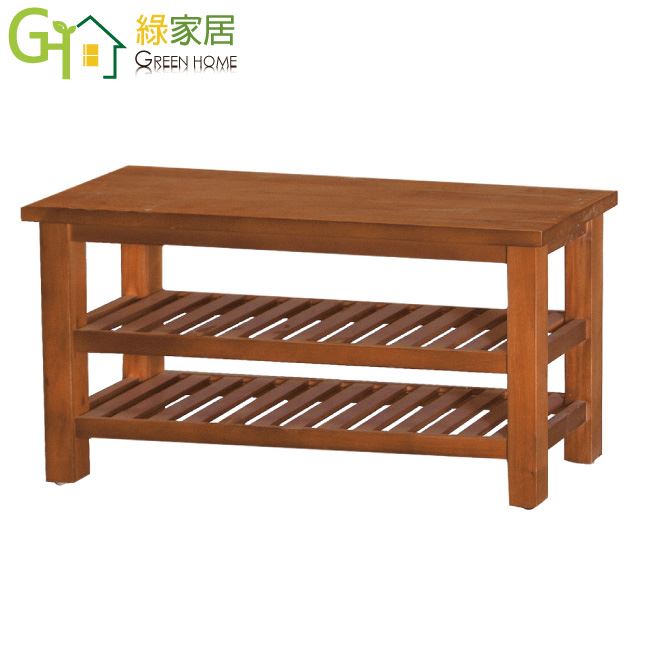 【綠家居】亞比博 淺樟木紋3尺實木開放式座鞋架