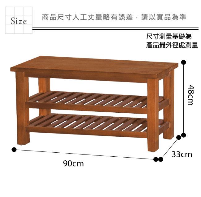 材質 | ◆產品名稱: 【綠家居】亞比博 淺樟木紋3尺實木開放式座鞋架 尺寸:(寬)90x(深)33x(高)48/公分 ◆材質: 材質:松木實木+防潮實木腳座 噴漆:防潮耐磨噴漆處理