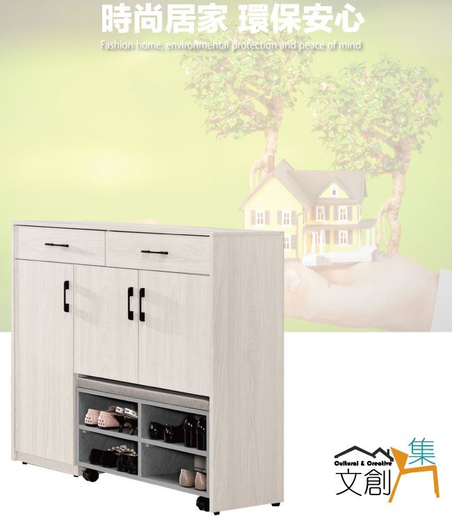 商品 介紹 | 【綠家居】摩克4尺三門二抽多功能鞋櫃組合 淺橡木紋色系+現代簡約風格+安心材質製造,使用放心+搭配居家更便利,整體採用防蛀木心板+五金滑軌結構+防潮耐磨腳座+防夾手緩衝門片五金等材質搭配外層採用優莉坦耐磨全包式噴漆處理 ,採用開門櫃+二抽屜+內&外開放層格+便利座鞋椅凳(可分開使用)等收納空間設計,全由專人配送到家,專業安心服務,替你省下更多時間! 【商品特色】 淺橡木紋色系+現代簡約風格+安心材質製造,使用放心+搭配居家更便利 防蛀木心板+防潮耐磨腳座+防夾手緩衝門片五金+五金滑軌結構等材質 採用開門櫃+二抽屜+內&外開放層格+便利座鞋椅凳(可分開使用)等收納空間設計 此商品不需要DIY組立,此商品為組立後之成品 品質保證、專業設計、貼心服務 全由專人配送到家,專業安心服務,替您省下更多時間 |