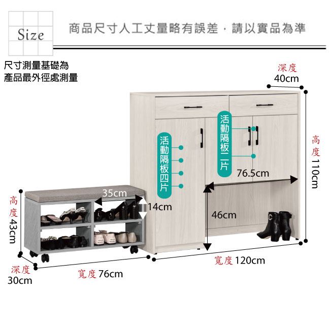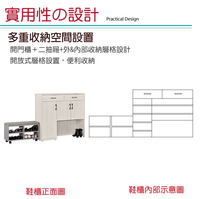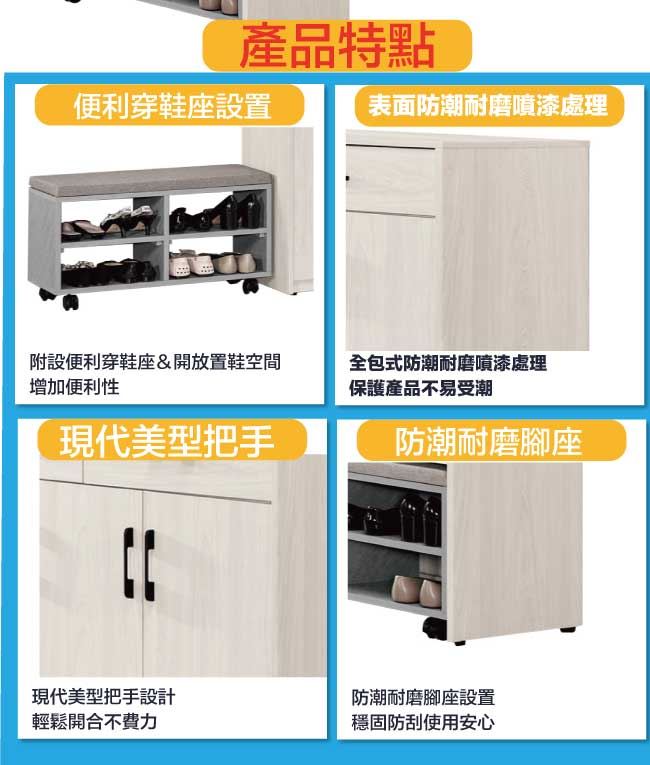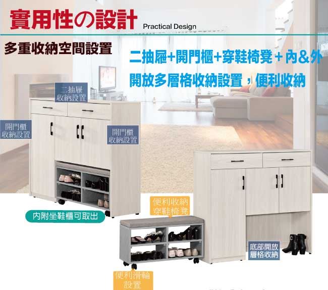 - 開門櫃+便利座鞋椅凳+二抽屜
