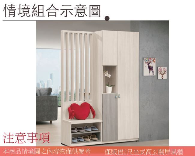 【綠家居】波絲2尺高玄關屏風坐鞋櫃組合