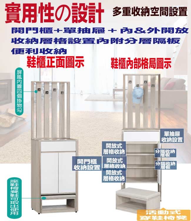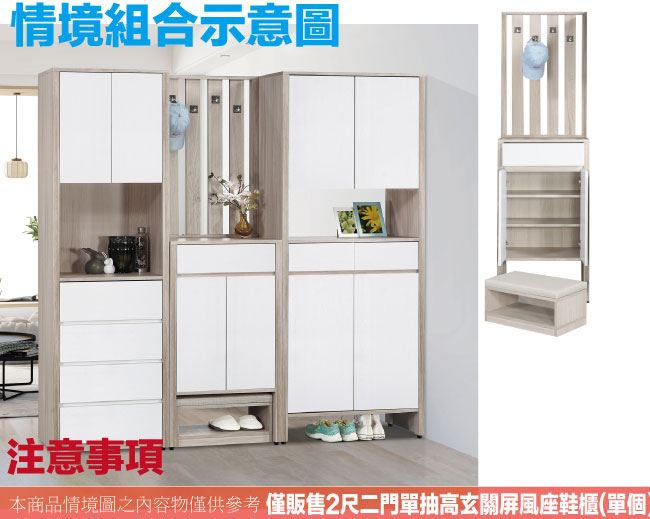 【綠家居】莎格雙色2尺二門單抽高屏風玄關座鞋櫃