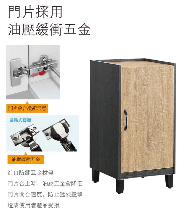 - 三色可選+防夾手緩衝門片五金