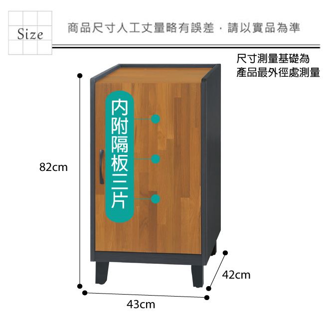 材質 | ◆產品名稱: 【綠家居】法加亞 雙色1.4尺單門低鞋櫃(三色可選) 尺寸:(寬)43x(深)42x(高)82/公分 ◆材質: 材質:防蛀木心板+防潮耐磨腳座+防夾手緩衝門片五金 噴漆:防潮耐磨噴漆處理