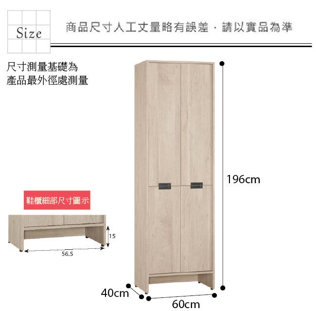 材質 | ◆產品名稱: 【綠家居】喬安 時尚2尺四門高鞋櫃/玄關櫃 產品尺寸: 尺寸:(寬)60x(深)40x(高)196公分 ◆材質: 材質:防蛀木心板+全包式底座 材質:防夾手緩衝門片五金 塗漆:優利坦全包式耐磨噴漆處理