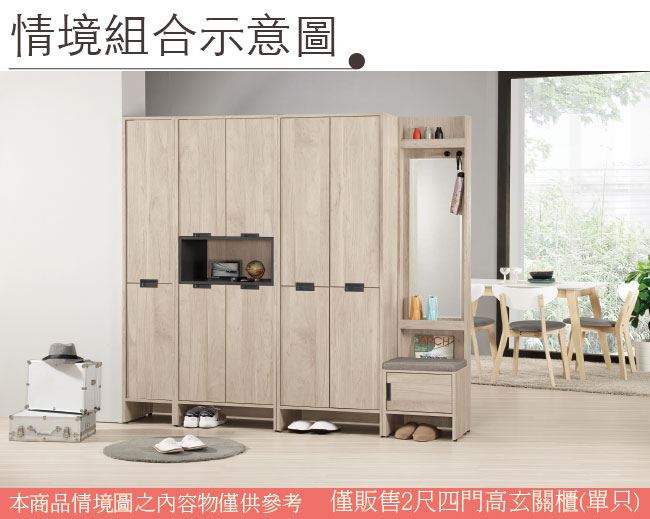 【綠家居】喬安 時尚2尺四門高鞋櫃/玄關櫃