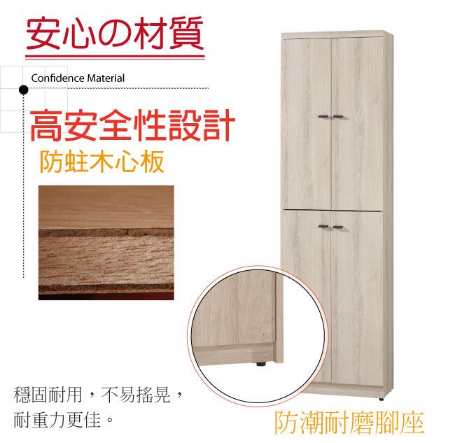 材質 | ◆產品名稱: 【綠家居】杜斯 時尚2尺四門高玄關櫃/鞋櫃(三色可選) 產品尺寸: 尺寸:(寬)60.5x(深)32x(高)183.5公分 ◆材質: 材質:防蛀木心板+防潮耐磨腳座 材質:防夾手緩衝門片五金 塗漆:優利坦全包式耐磨&亮面噴漆處理