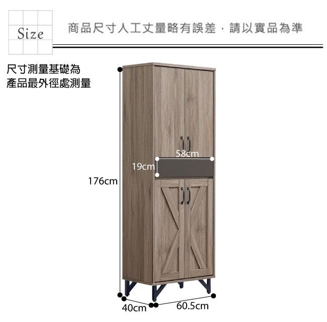 材質 | ◆產品名稱: 【綠家居】歐格利 現代2尺四門單抽高鞋櫃/玄關櫃 產品尺寸: 尺寸:(寬)60.5(深)40x(高)176/公分 ◆材質: 材質:防蛀木心板+黑鐵烤漆腳座+防夾手緩衝門片五金+五金滑軌結構 塗漆:優利坦全包式耐磨噴漆處理