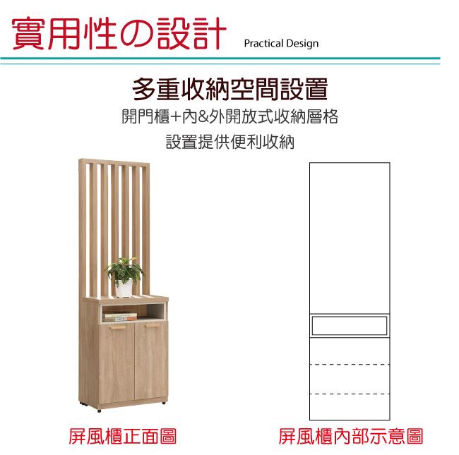 【綠家居】伊瑟隆 時尚2尺二門屏風玄關櫃/高鞋櫃