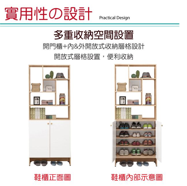 - 開門櫃+內&外開放式收納層格