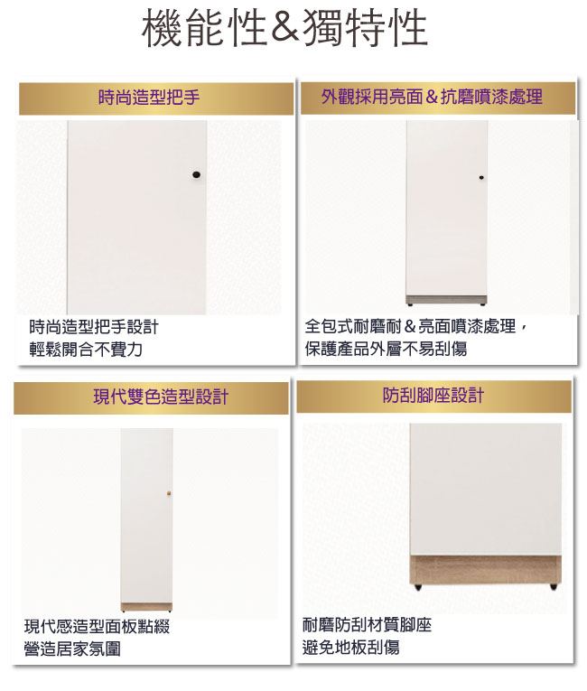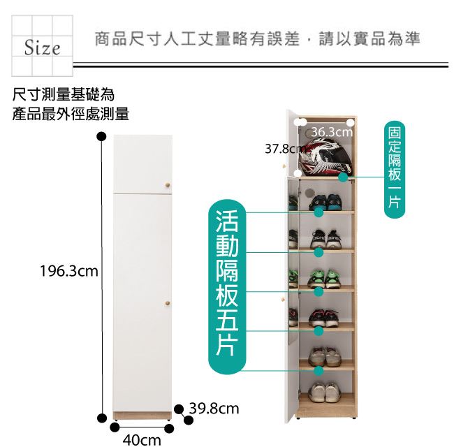 材質 | ◆產品名稱: 【綠家居】奧蘿瑟 時尚1.3尺二門玄關櫃/高鞋櫃(二色可選) 尺寸:(寬)40x(深)39.8x(高)196.3/公分 ◆材質: 材質:防蛀木心板+防潮耐磨腳座+防夾手緩衝門片五金 噴漆:防潮耐磨&亮面噴漆處理