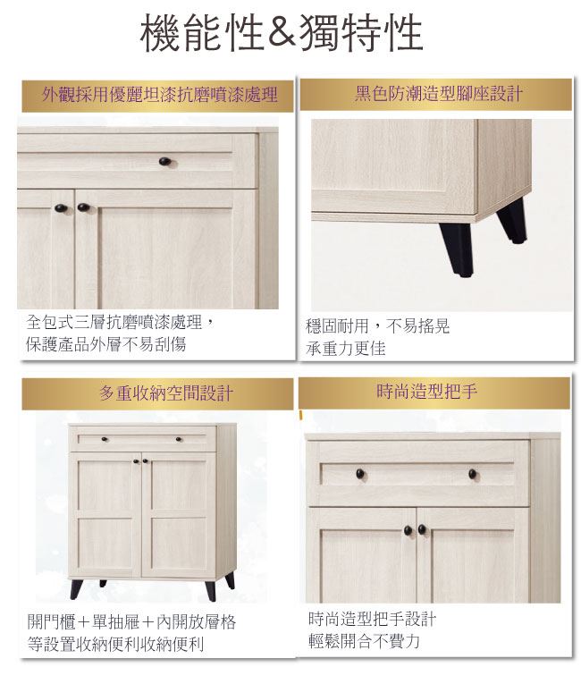 - ◆產品名稱:【綠家居】安法2.6尺二門單抽鞋櫃