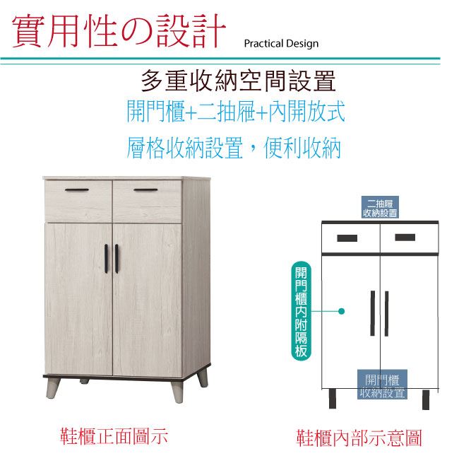 - ◆產品名稱:【綠家居】華安2.7尺二門二抽鞋櫃
