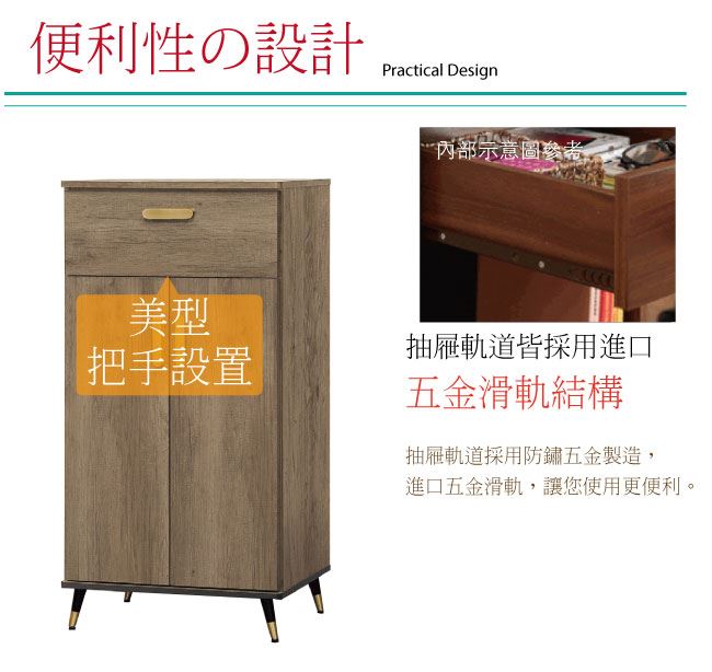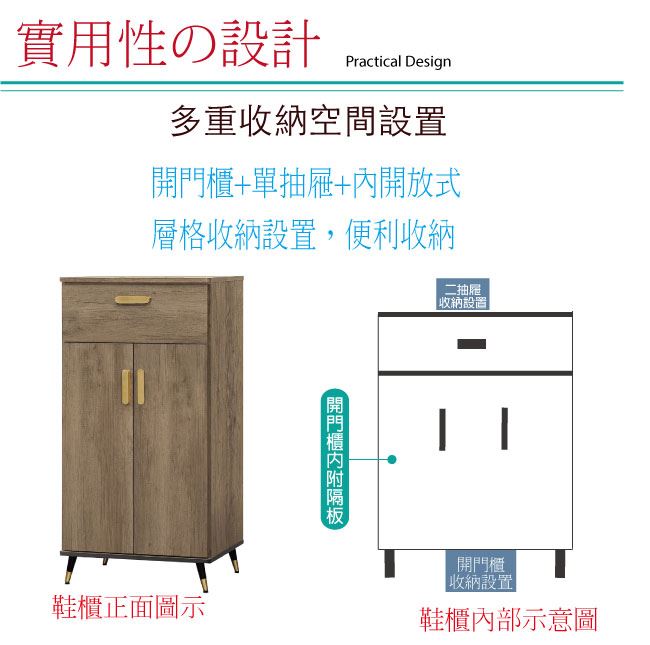 - ◆產品名稱:【綠家居】普安2尺二門單抽鞋櫃